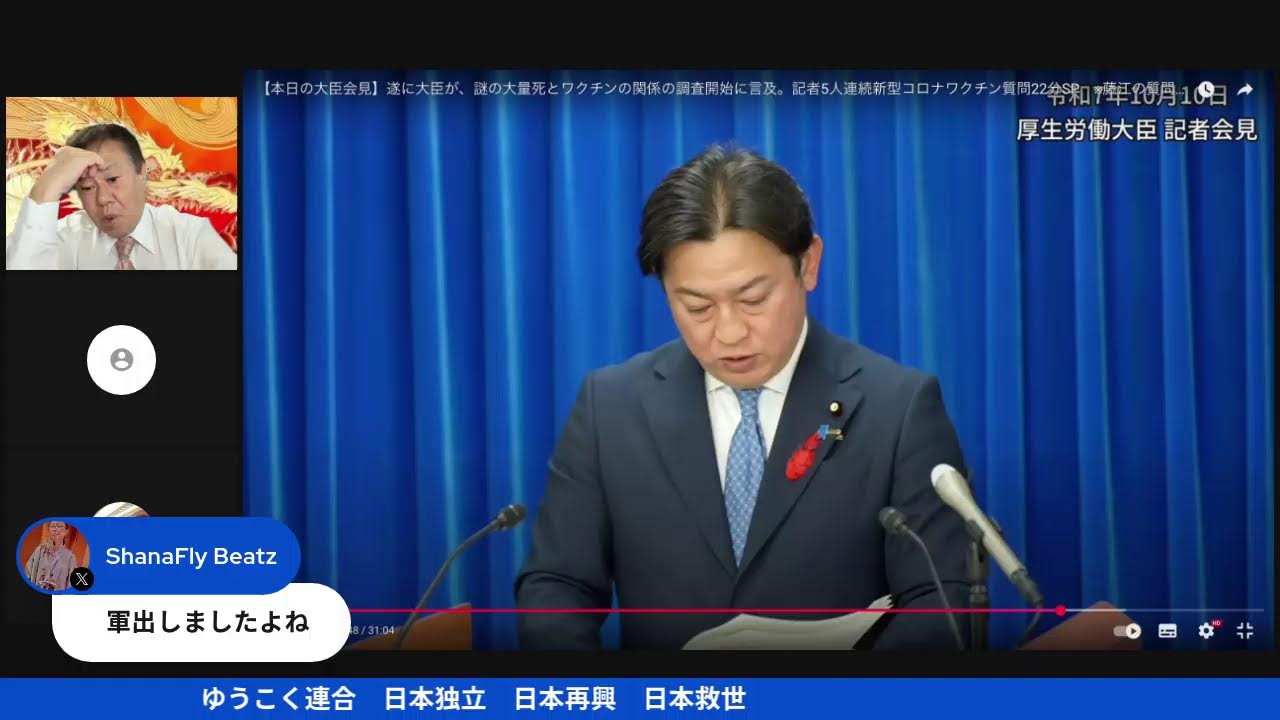 原口一博さん(2025年10月10日):【本日の大臣会見】遂に大臣が、謎の大量死とワクチンの関係の調査開始に言及。記者5人連続新型コロナワクチン質問22分(藤江成光氏)