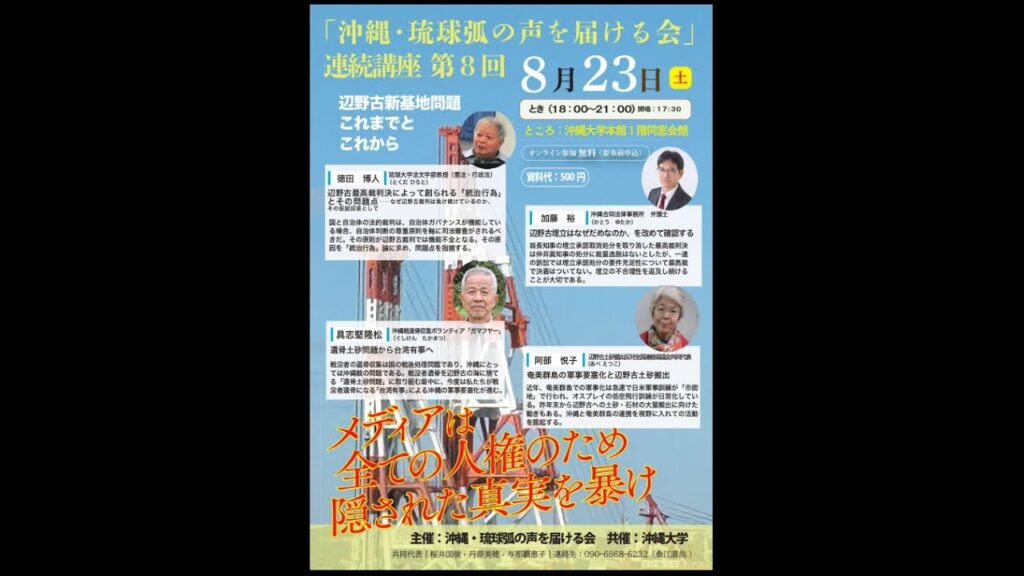 鳩山友紀夫さん/友愛チャンネル:メディアはすべての人権のため隠された真実を暴け「浦添西海岸埋め立て問題を考える」