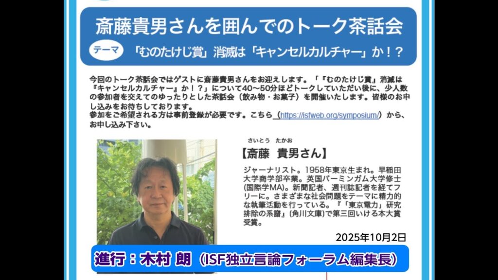 「むのたけじ賞」消滅は「キャンセルカルチャー」か!? 斎藤貴男(ジャーナリスト)、木村朗(ISF独立言論フォーラム編集長)