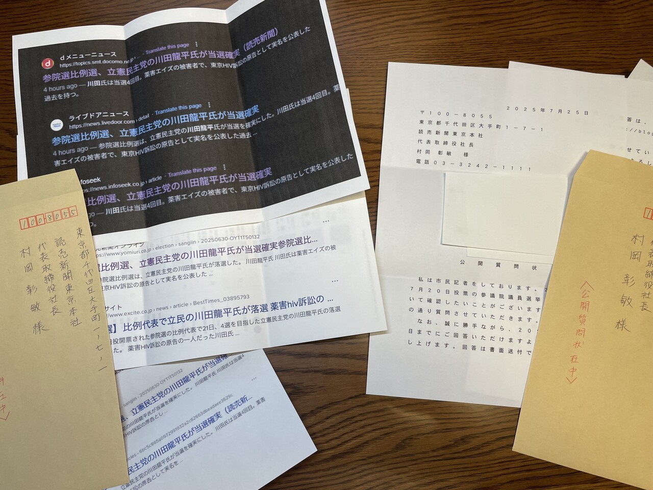 メディア批評&事件検証7月20日投票の参院選全国比例で落選した立憲民主党の川田龍平(49)の当選確実を一部ウェブニュースが伝えたことについて筆者は25日、読売新聞社に公開質問状を送付した。「誤報」の経緯を尋ねている。