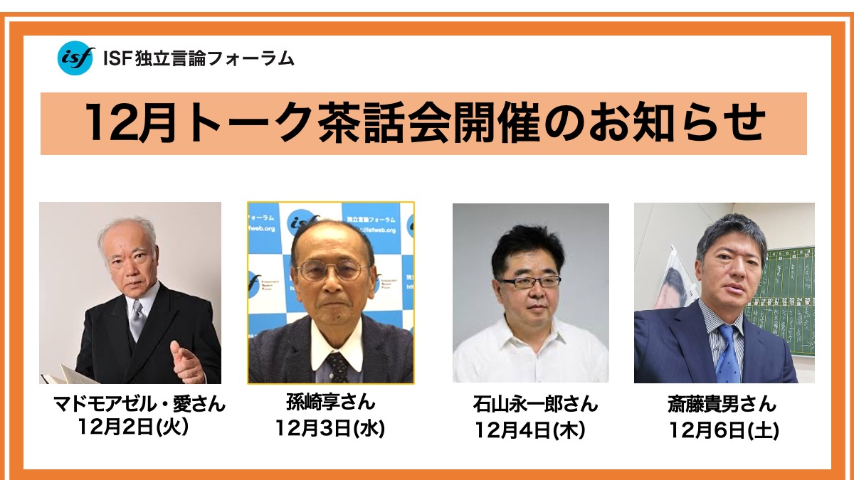 ○ISF主催トーク茶話会:孫崎享さんを囲んでのトーク茶話会12/3(水)のご案内