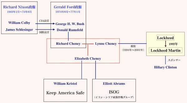 この粛正を主導したのは大統領首席補佐官だったラムズフェルドと大統領副補佐官だったチェイニーだとされているが、その背後にはポール・ニッツェやアルバート・ウールステッターを中心とするグループが存在した。この人脈は後にネオコンと呼ばれるようになる。ラムズフェルドとチェイニーはロナルド・レーガン政権で地下政府プロジェクトのCOGに参加。レーガン大統領は1982年にNSDD55を出してCOGプロジェクトを承認、NPO(国家計画局)が創設された。(Andrew Cockburn, “Rumsfeld”, Scribner, 2007)