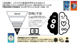 このように、まったく信頼することができない国、製薬会社、医者、医師会がいう事が正しいと信じさせるために、愚民化教育がされており、メディアはこれらを信じるに足りるという誤情報を発信し続けている。私たちは物理空間のほんの一部だけを見て、世界を見た気になっているだけである。物理世界の上(裏側)には膨大な情報空間が広がっているが、私たちはそのような膨大な情報を正しく認知することはできていない。もともと視野の狭い私たち人間に対して、常時、テレビや新聞が嘘を吹き込んでいる。そして、さらにはSNSが、別の角度から嘘を吹き込んできている。