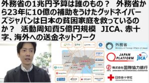 【脱カルト支配】外務省の1兆円予算は誰のもの? 外務省から23年10億補助グッドネイバーズジャパンは日本の貧困家庭を救っているのか?活動周知費5億円規模 JICA、赤十字、海外への送金ネットワーク
