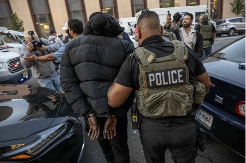 おそらくトランプはステファニックの当選を支援するために、NY州とNY市への介入を強めるだろう。すでに、トランプ政権はNY市への連邦政府からの資金援助を削減する方法を模索しており、トランプがNYでの移民取締りを命じた場合、どのようなものになるかを議論しはじめている。10月21日には、約50人の連邦捜査官がNY市キャナル・ストリートで観光客に高級品の密造品を違法に販売するアフリカ系の人々の一斉検挙に乗り出し、9人を逮捕した(下の写真)。今後、シカゴで展開したような積極的な移民関税執行局(ICE)の投入に踏み切る可能性もある。