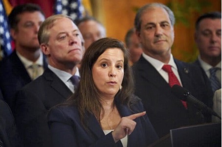 この「マンダニ‐ホークル」連合に対して、トランプが標的にする可能性が高い。NY州北部選出の保守派共和党議員でホワイトハウスと密接な関係をもつエリゼ・ステファニック下院議員(下の写真)は11月7日、来年の州知事選に出馬すると発表した。彼女は、ホークル知事が民主社会主義者のマンダニと関係をもつことを激しく非難する一方、頻繁にホークルを「アメリカ最悪の知事」と呼んでいる。