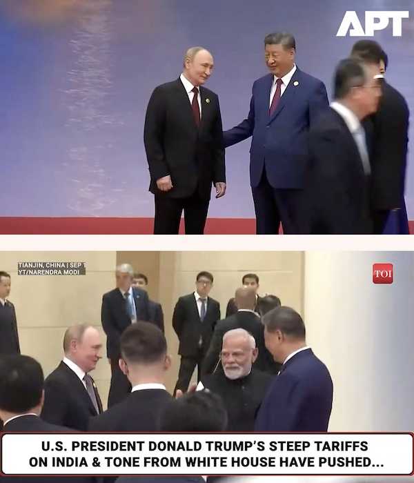 8月31日から9月1日にかけて天津でSCO(上海協力機構)の首脳会議が開催され、24カ国と9国際組織の首脳が参加した。その際、ロシア、中国、そしてインドの結束が世界にアピールされている。会場から引き上げる際、プーチン大統領はインドのナレンドラ・モディ首相を自身のリムジンへ招き入れ、親密さを示した。ロシアとインドの二国間会談でロシアの通訳は英語でなくヒンディー語を使ったことも話題になった。