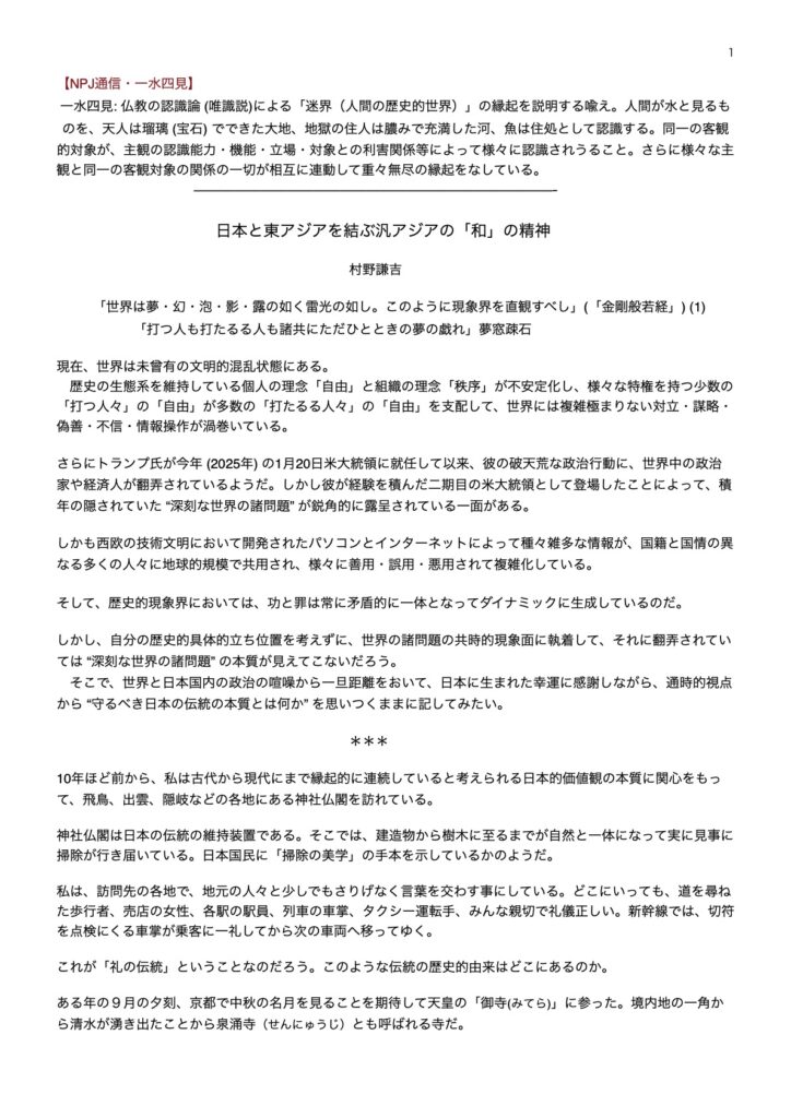 日本と東アジアを結ぶ汎アジアの「和」の精神