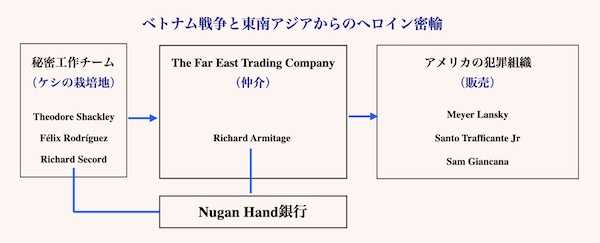 麻薬取引は情報機関の工作と関係が深い。アメリカのCIAはベトナム戦争の際にはヘロイン、中央アメリカで秘密工作を実行した際にはコカイン、アフガン戦争の際にはヘロインを製造し、売り捌いて資金を調達している。