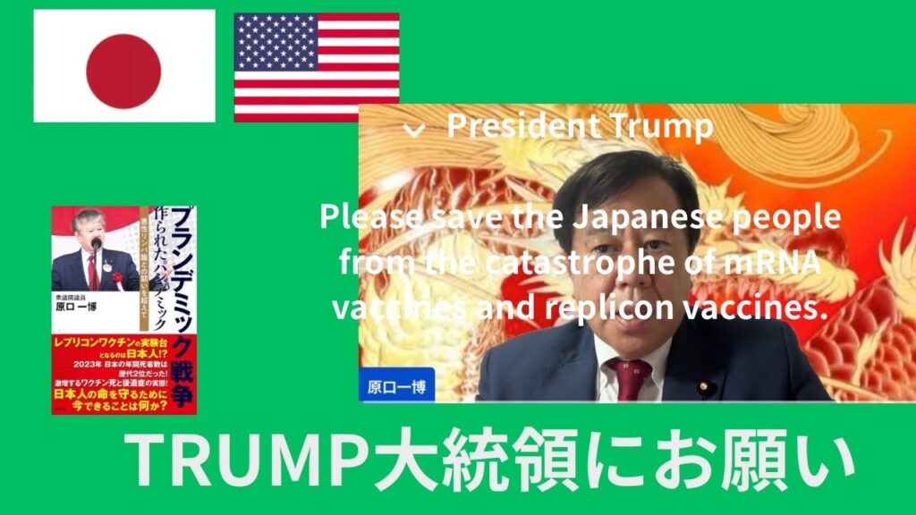 原口一博さん(2025年10月28日):親愛なるトランプ大統領に。史上最悪の惨禍から日本人を守るために。トランプ政権、特にケネディJr.長官との緊密な情報共有を要請します。
