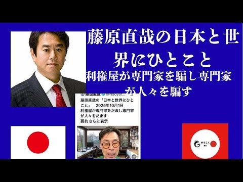 原口一博さん(2025年10月2日):【藤原直哉の日本と世界にひとこと】から 世界を見る視点 「真実と虚構」 利権屋が専門家を騙し、専門家が人々を騙す。