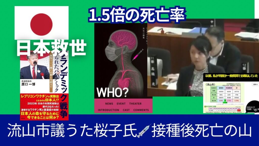 原口一博さん(2025年10月13日):2025.9.12 千葉県 流山市議会 うた桜子議員 接種者と未接種者を比較した千葉県流山市の衝撃のデータ 接種者が未接種者より約1.5倍の死亡率 接種者は最終接種5か月目に死亡の山ができていた
