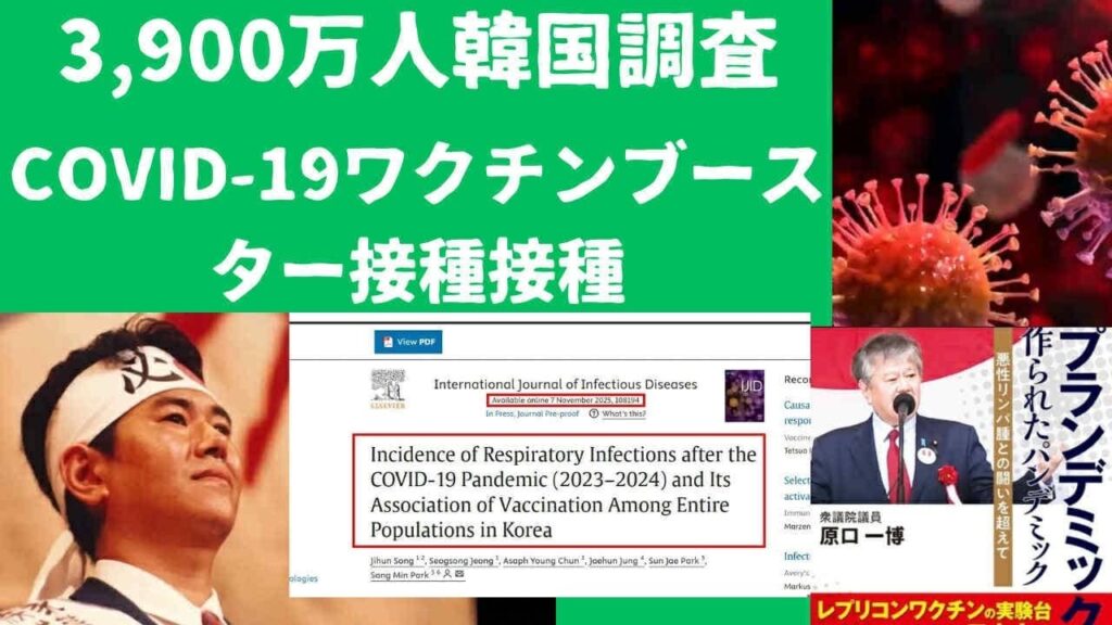 原口一博さん(2025年11月21日):2025年11月7日発表の韓国全国規模研究(3900万人超のコホートデータに基づく)によると、COVID-19ワクチンブースター接種接種(4回以上)は、未接種者と比較