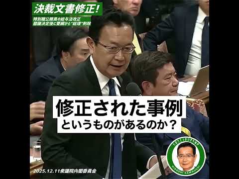 【ヒロシキャス】(2025年12月12日): ②修正の発意は副長官⁉️いやいや。閣議で誰が言い出したのかは言えないというのは日本政府の悪い癖だ‼️ #川内ひろし #給与法改正