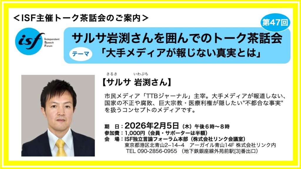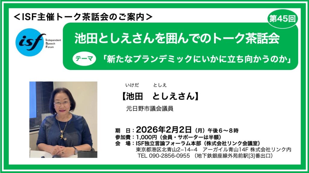 ISFは市民による独立メディアです。広告に頼らずにすべて市民からの寄付金によって運営されています。皆さまからのご支援をよろしくお願いします!